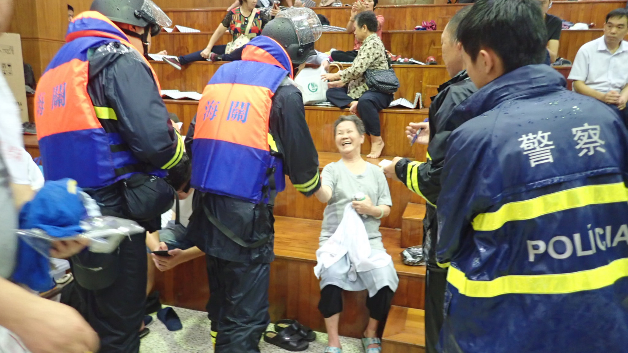 保安部隊及部門人員在全澳各區開展救援工作,並持續協助區內居民進行撤離。