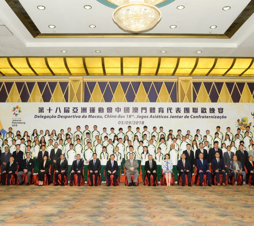 為祝賀中國澳門體育代表團在「第十八屆亞洲運動會」取得佳績,體育局日前假漁人碼頭會議中心宴會廳舉行聯歡晚宴,行政長官崔世安等出席活動及祝賀體育代表團載譽歸來。