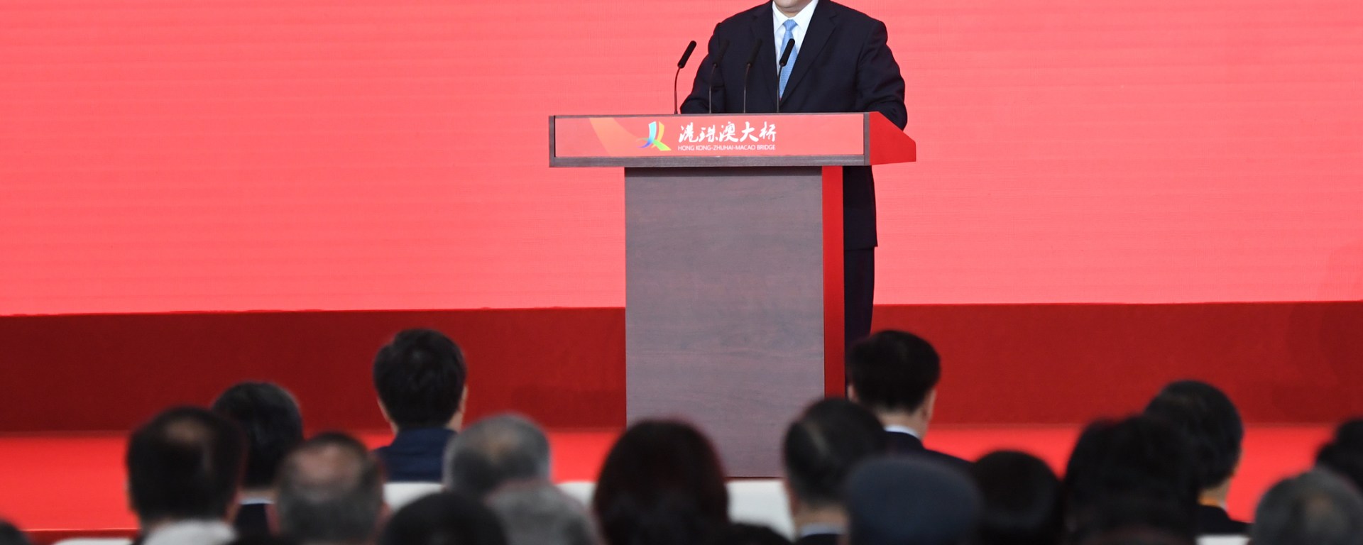 港珠澳大橋開通儀式於10月23日上午在港珠澳大橋珠海口岸邊檢大樓舉行,中共中央總書記、國家主席習近平出席儀式並宣布大橋正式開通。行政長官崔世安致辭時表示,港珠澳大橋的建成通車,具有深刻的政治、經濟和社會意義。
