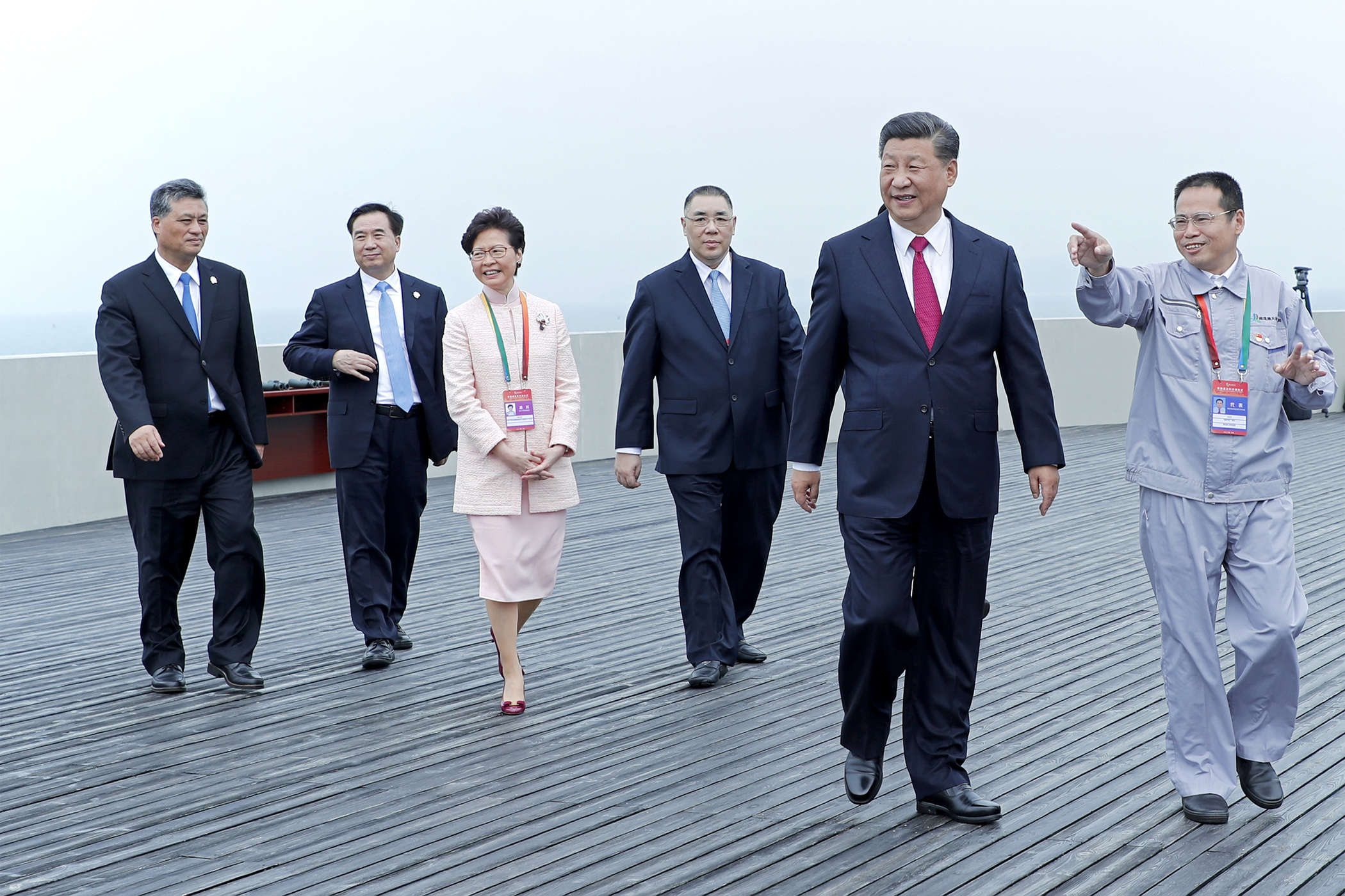 儀式後,中共中央總書記、國家主席習近平(右二),行政長官崔世安(右三)等主賓巡覽了港珠澳大橋。
