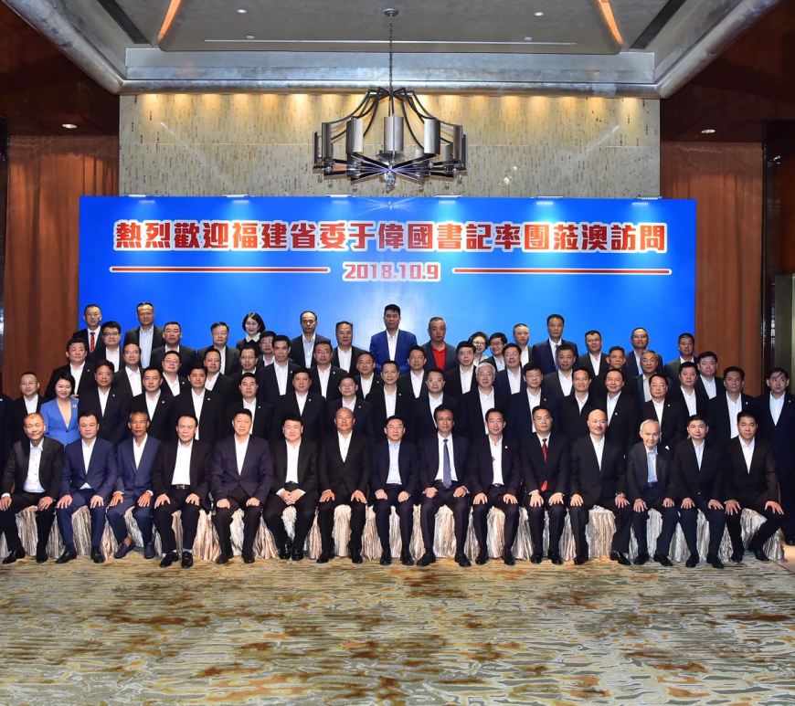 澳門福建同鄉總會、福建省澳區政協委員聯誼會十月九日在美高梅宴會廳舉行晩宴,歡迎福建省委書記于偉國,全國政協副主席何厚鏵、中聯辦副主任孫達、外交部駐澳門特派員公署副特派員袁恒革、經濟財政司司長梁維特、社會文化司司長譚俊榮、審計署審計長何永安、行政委員會發言人梁慶庭等嘉賓出席。全國政協常委、澳門福建同鄉總會會長許健康勉勵福建鄉親將一如既往、團結一致,熱愛福建、熱愛澳門,為閩澳兩地合作共贏、協同發展,奉獻更多的智慧和力量。
