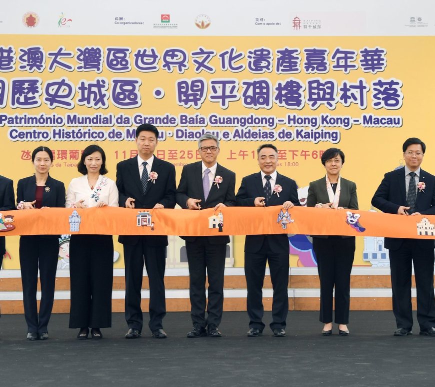 「澳門歷史城區」和「開平碉樓與村落」是目前粵港澳大灣區內僅有的兩處世界文化遺產,為加強兩地在文化領域上的交流,充分發揮兩地文化資源優勢,推動兩地在文化旅遊、文化創意產業、美食及旅遊等方面的合作和推廣,共同打造大灣區的文化名牌,文化局與開平市文化廣電新聞出版局、開平市文物局主辦,旅遊局及澳門開平同鄉聯誼會協辦「粵港澳大灣區世界文化遺產嘉年華-澳門歷史城區.開平碉樓與村落」,嘉年華於11月24至25日於氹仔龍環葡韻舉行,更有開平市藝術團舞蹈及葡萄牙法多音樂(Fado)表演助慶,場面熱鬧。