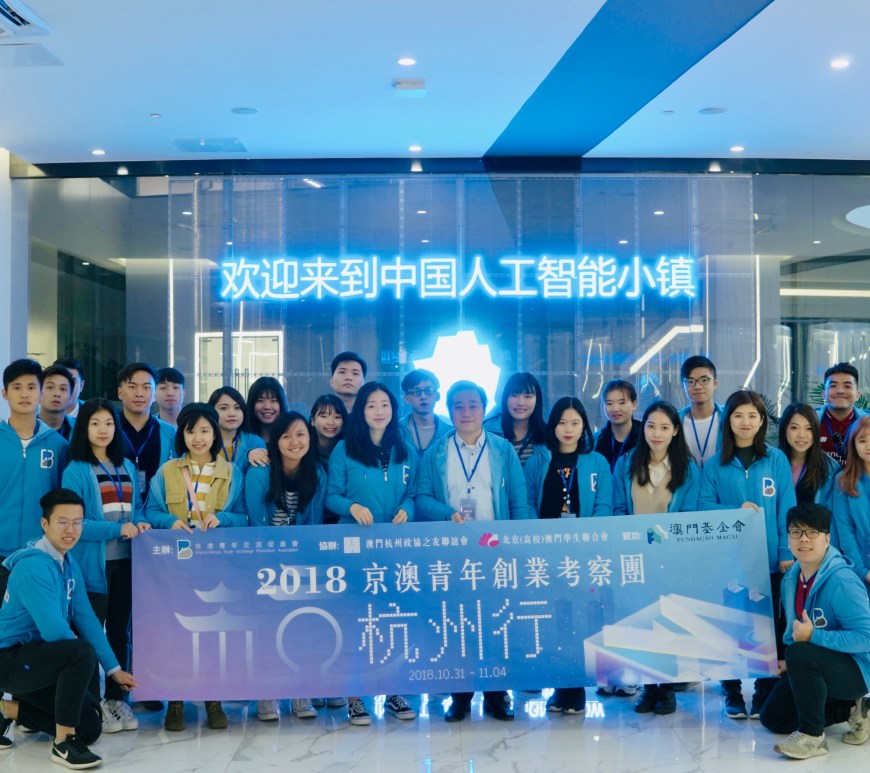 「2018京澳青年創業考察團—杭州行」考察團由京澳青年交流促進會主辦,澳門杭州政協之友聯誼會,北京(高校)澳門學生聯合會協辦,澳門基金會贊助。京澳青年交流促進會一行三十人,展開為期五天的考察交流。是次考察團先後走訪了螞蟻金融服務集團、銀江集團、大運河手工藝活態展示館、夢想小鎮、人工智能小鎮、杭州米絡科技有限公司、浙江永拓信息科技有限公司、杭州創意設計中心、泰然集團、浙江大學、白馬湖生態創意城、海康威視及杭州駿盛九騎單車生活館。為優秀青年及學生提供全方位、多層次的機會,從不同層面深入認識國家對創新創業的最新發展、機遇與挑戰,並加強團結澳門青年領袖力量。
