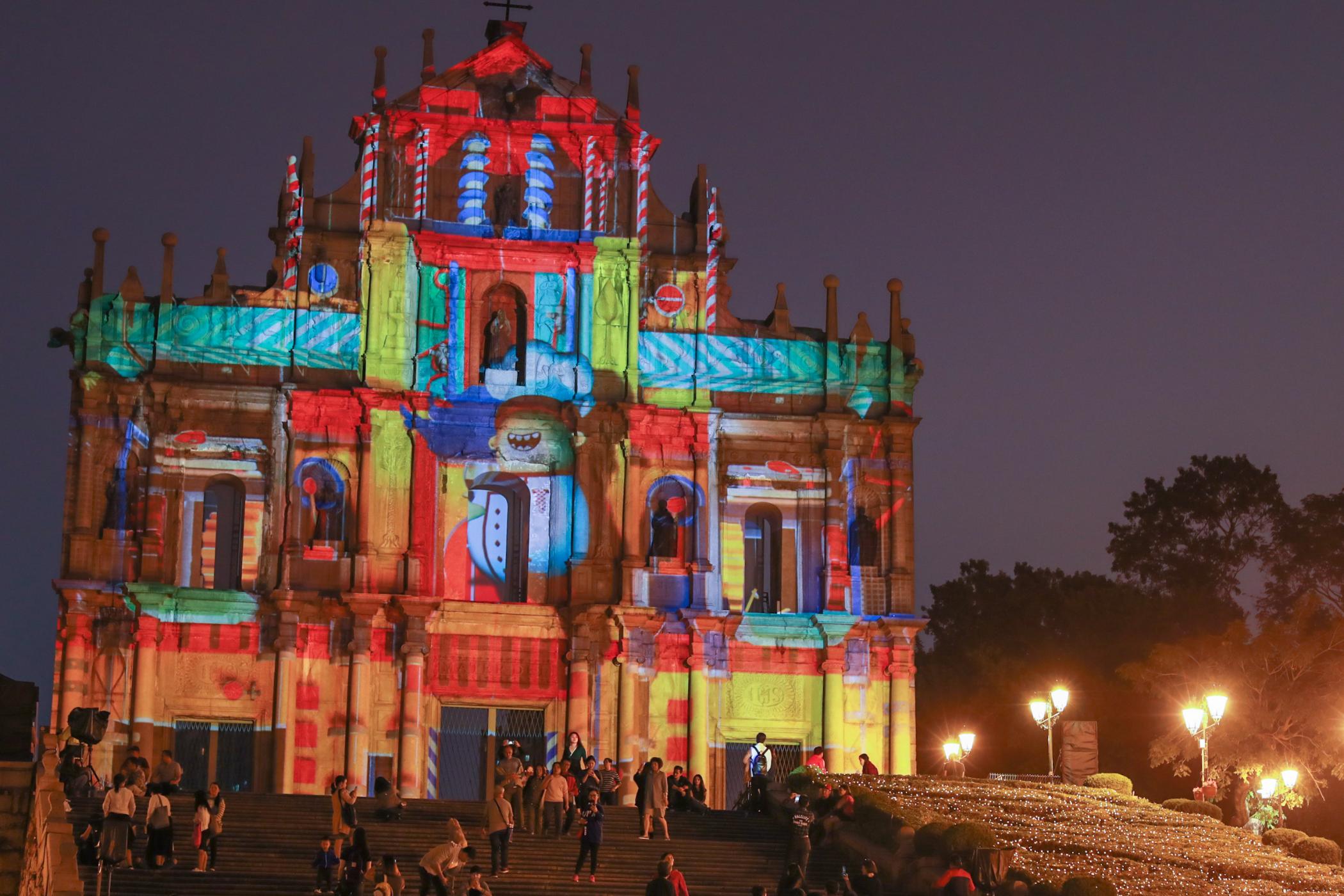 大三巴牌坊分期上演3個分別由來自葡萄牙、比利時及澳門的光影製作團隊打造的光雕表演