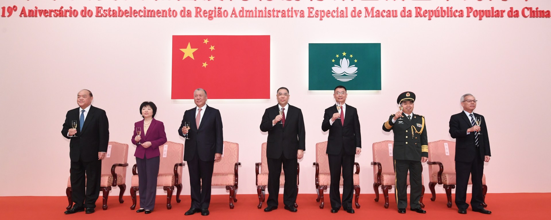 酒會前,特區政府上午8時在金蓮花廣場舉行隆重的升旗儀式,出席的政府官員及嘉賓約350人。此外,多個政府部門及民間團體今日分別舉行活動,熱烈慶祝澳門特區成立十九周年。