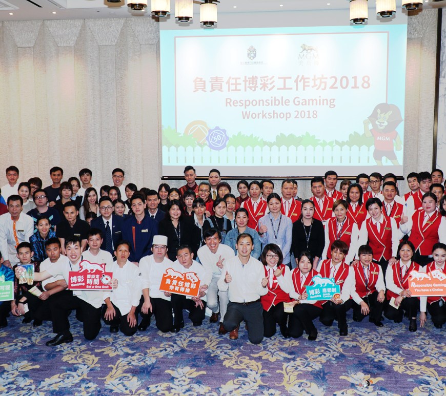 美高梅全力支持澳門特區政府的負責任博彩舉措,積極提高團隊成員的相關意識。至今,美高梅已為員工提供超過32,000小時的負責任博彩培訓,平均每位員工每年接受約1.5小時培訓。為進一步支持由澳門博彩監察協調局、社會工作局及澳門大學博彩研究所合辦之「負責任博彩推廣2018」,公司分別於旗下兩家綜合度假酒店——澳門美高梅與美獅美高梅舉辦為期兩週的推廣活動,主題為「博彩不是搏命.娛樂就要節制」。活動內容包括美高梅自家製微電影及相關宣傳動畫、工作坊、攤位遊戲、專業咨詢傾談服務及線上有獎問答遊戲,深化成員對賭博失調和負責任博彩的認識。