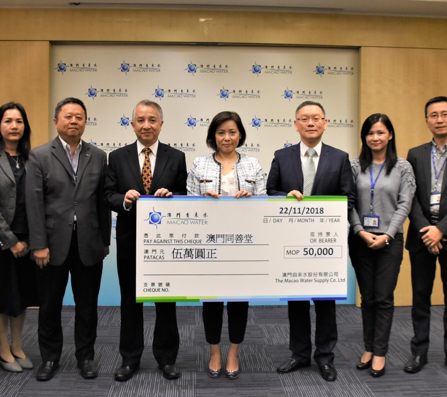 澳門自來水致力為全澳巿民提供優質安全的食水,同時秉持「取於斯,用於斯」的理念,肩負社會公益責任,積極參與公益事務,扶助本澳各慈善團體。今年繼續響應同善堂的“沿門勸捐”活動,捐贈澳門幣五萬圓善款,用作支持該機構未來一年籌備活動的經費,以點滴綿力,潤澤各階層的巿民。