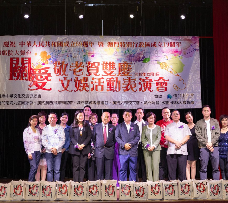 日前,桂粵中華文化交流促進會於國華戲院大舞台舉行「關愛敬老賀雙慶文娛表演會」,向在場一百五十多位長者贈送福包,活動由青年及長者表演者同台獻藝,為長者帶來一個豐富的文娛表演會。