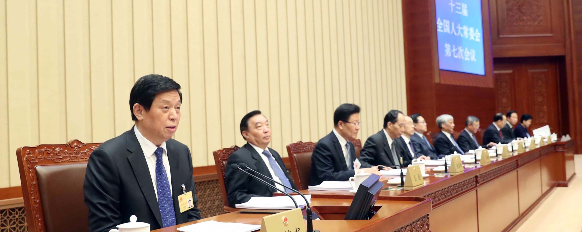 閉幕會後,十三屆全國人大常委會舉行第八次專題講座,栗戰書委員長主持。全國人大常委會副秘書長信春鷹作了題為《改革開放40年全國人大及其常委會的立法工作》的講座。