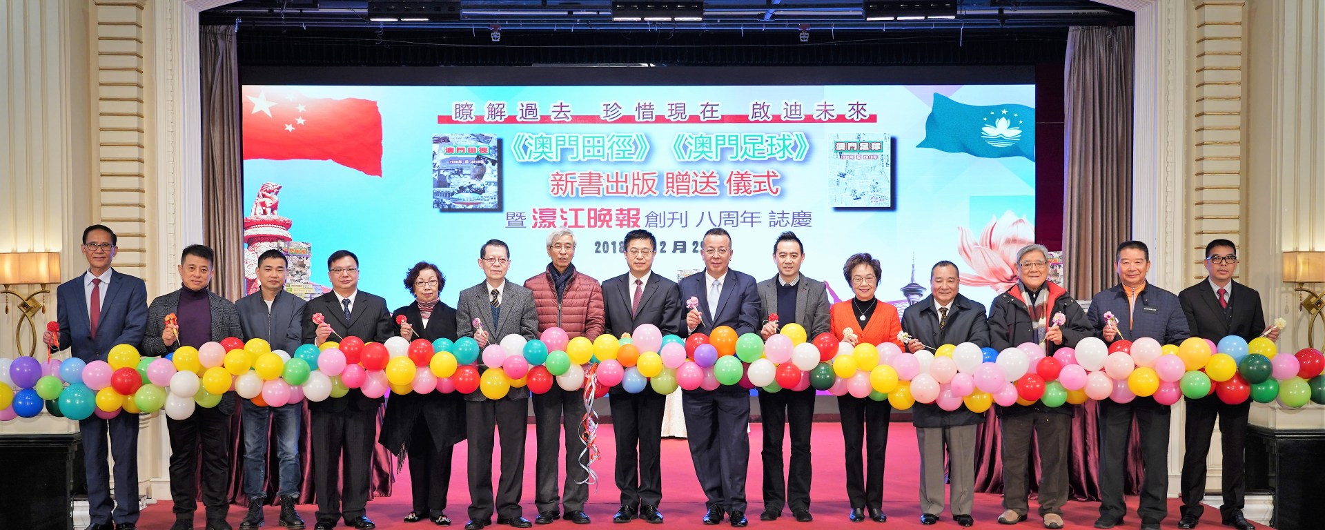 澳門田徑》、《澳門足球》新書出版贈送儀式暨濠江晚報創刊八週年誌慶十二月廿九日下午假萬豪軒酒家舉行,中央人民政府駐澳門聯絡辦公室宣傳文化部部長萬速成,民政總署管委會主席戴祖義,行政會發言人梁慶庭,體育局代局長劉楚遠,澳門基金會行政委員區榮智,全國政協委員、澳門婦女聯合總會會長賀定一,華僑報社長鄭秀明,澳門體育總會聯合會主席陳永傑,澳門蓮花衛視台長李自松,澳門田徑總會理事長林顯富,濠江晚報董事程炳濓、關偉霖及董事長賴百齡代表麥炳耀、社長兼總編輯許焯勝出席並主持開幕禮,場面熱鬧溫馨。
