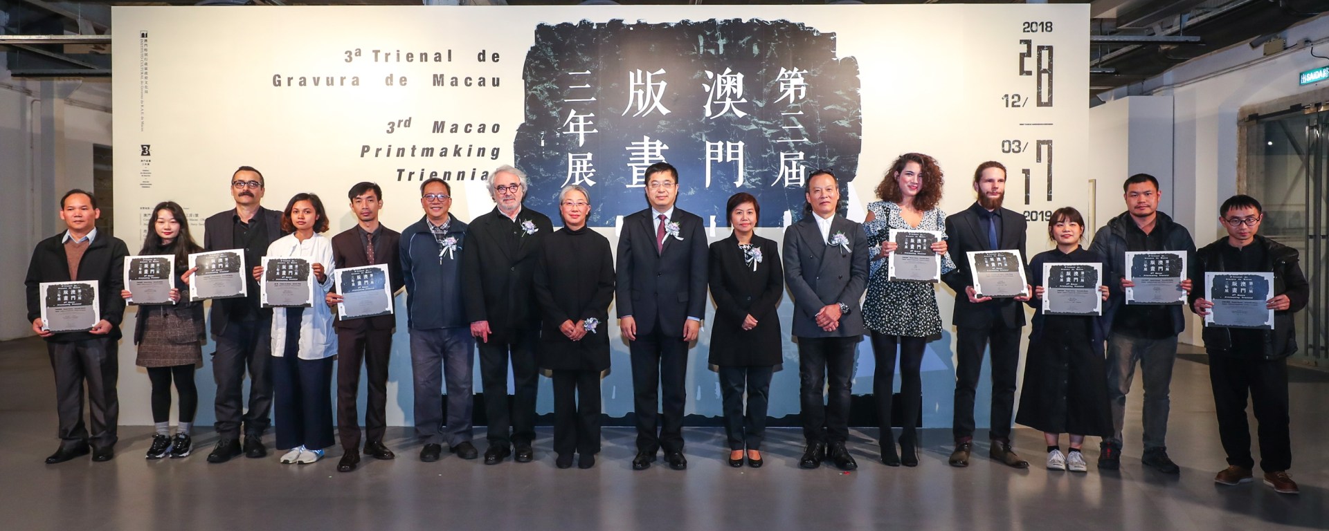 由文化局主辦的「第三屆澳門版畫三年展」於1月4日下午6時30分在澳門當代藝術中心.海事工房1號舉行開幕儀式,並對獲奬藝術家進行頒奬。中央人民政府駐澳門特別行政區聯絡辦公室宣傳文化部部長萬速成、文化局代副局長劉芳、評審委員Luckana Kunavichayanont、Maurice Pasternak、張敏杰及蘇沛權主持開幕儀式,一眾入選及獲獎作品的藝術家和專家評委出席活動,現場氣氛熱烈。