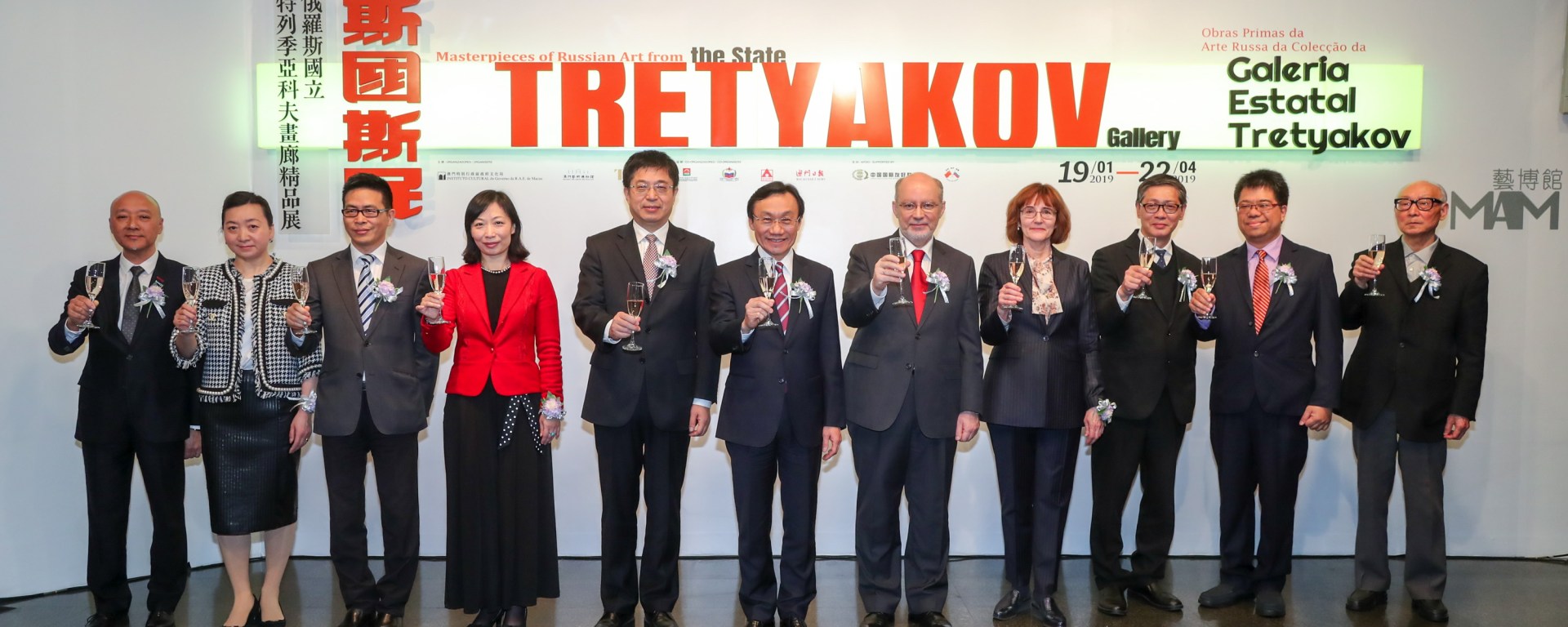 由文化局澳門藝術博物館、俄羅斯國立特列季亞科夫畫廊攜手呈獻的年度大展「斯國斯民──俄羅斯國立特列季亞科夫畫廊精品展」於1月18日下午6時30分在澳門藝術博物館一樓隆重開幕,由社會文化司司長譚俊榮、中央人民政府駐澳門特別行政區聯絡辦公室宣傳文化部部長萬速成、俄羅斯聯邦駐香港總領事館總領事科茲洛夫(Alexander V. Kozlov)、文化局局長穆欣欣、俄羅斯國立特列季亞科夫畫廊副總監科羅特高娃(Tatiana Gorodkova)、旅遊局副局長程衛東、文化局副局長陳繼春、俄中文化教育科技發展基金會會長崔珊、澳門日報代總編輯崔志濤、澳門美術協會會長陸曦及中國美術家協會常務理事邵大箴主禮,場面熱鬧。