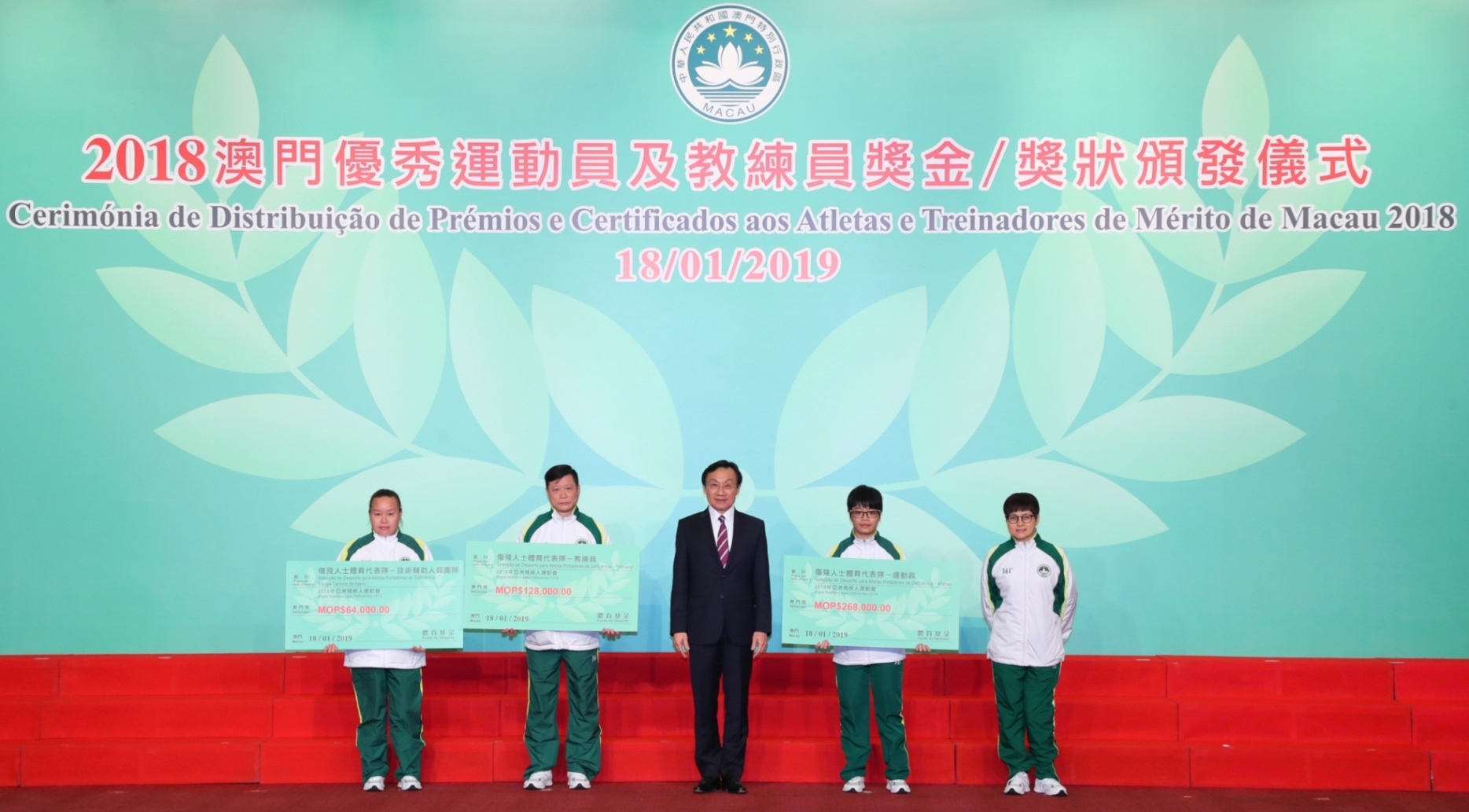 2018澳門優秀運動員及教練員獎金獎狀頒發儀式