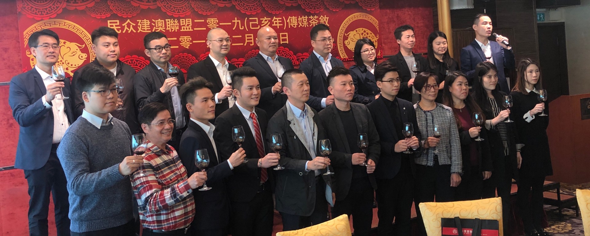 民眾建澳聯盟日前在金龍酒店四樓金龍軒舉行傳媒茶敘,創會主席陳明金、立法議員施家倫、宋碧琪等出席。民建聯主席陳俊拔表示,為助力及配合粵港澳大灣區建設,民建聯今年將於廣東設辦事處,拓展服務領域和範圍,為居於內地的本澳居民提供居住、就業等諮詢服務。