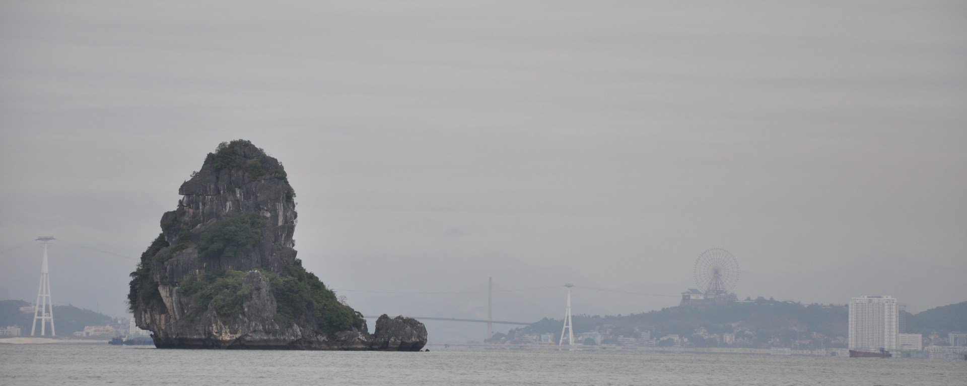 從上往下看,下龍灣像一幅美妙絕倫的大型水墨畫似的。乘船觀賞成千上萬的島嶼就像步入一個神秘古蹟的世界似的。有的島像朝着陸地看的一顆人頭,那就是人頭石;有的島像在水面上飛揚的一條龍,那就是龍石。有的島像坐着釣魚的老人,那就是呂望石。有的島像出海的一艘船,那就是帆石。有的島像相親相愛的兩隻雞,那就是雄雌雞石。有的島像焚香的器具,那就是香爐石。這些奇妙石島隨着時間和根據不同的視角而千變萬化。來到此地,我們才能看出來它們不是無知無覺的島嶼,而是炯炯有神的島嶼。