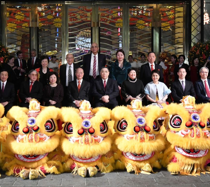 澳門行政長官崔世安、中華人民共和國外交部駐澳門特別行政區特派員公署特派員沈蓓莉、中央人民政府駐澳門特別行政區聯絡辦公室秘書長王新東、澳門社會文化司司長譚俊榮,與澳博及澳博控股董事局成員蘇樹輝、梁安琪、霍震霆、吳志誠、官樂怡大律師、江陽、藍鴻震、謝孝衍及眾嘉賓一起送犬迎豬。晚宴上播放了何鴻燊博士的豬年賀辭,為賓客送上何博士的新年問候和祝福。