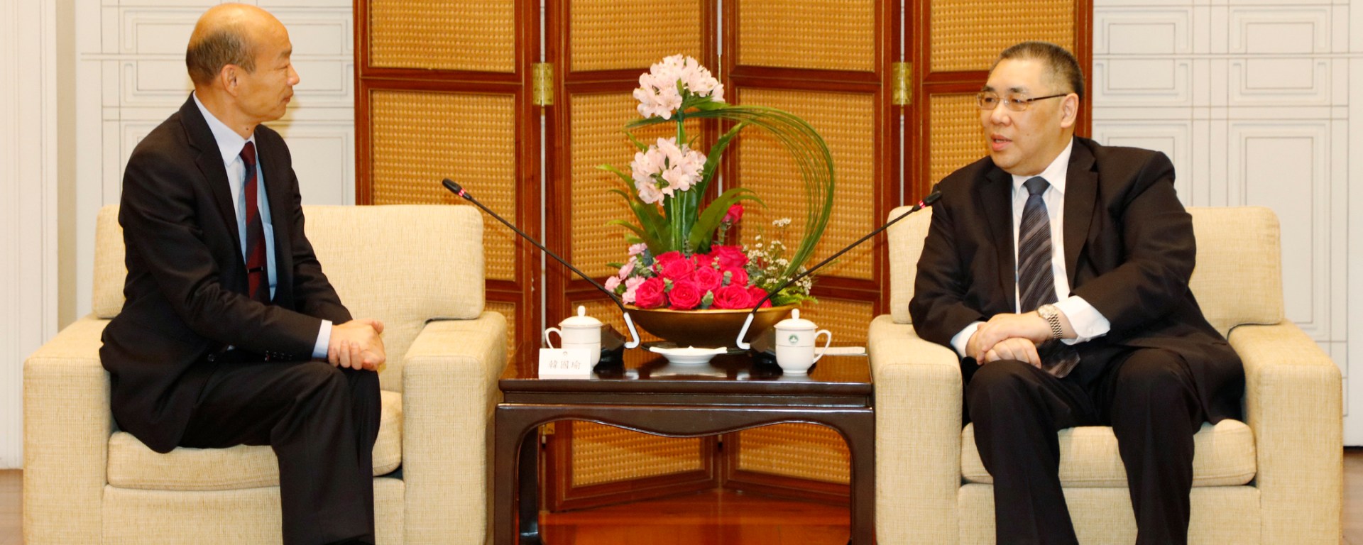 韓國瑜表示感謝行政長官和夫人撥冗會見。他表示,目睹澳門社會經濟發展快速,相信高雄市和澳門具有很大的合作潛力,尤其在高雄市農產品走出去方面,希望今後可以與澳門加強經貿往來,同時促進旅遊、文化等方面的合作。