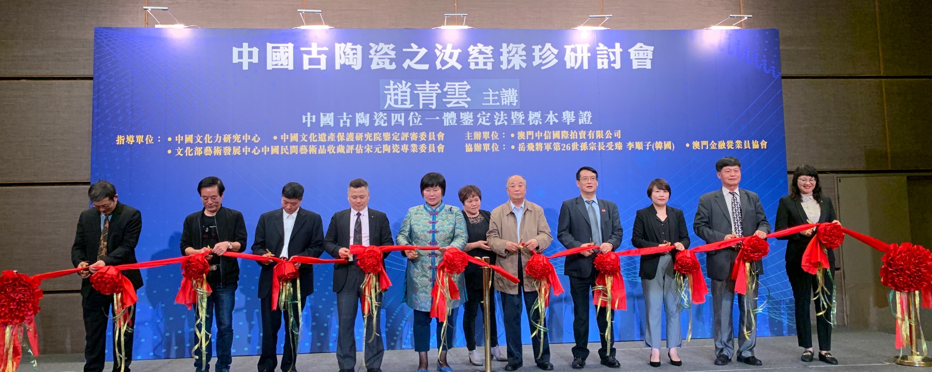 《中國古陶瓷之汝窯研討會》由中國著名古陶瓷鑒定家趙青雲老師主講,內容豐富精彩。趙老師把多年以來珍貴的研究成果,毫無保留地與出席人士一起分享。同時,主辦單位在現場還展出一百六十件精美瓷器,供出席人士鑒賞。《澳門中信二零一九年岳飛將軍二十六世孫李順子(韓國)古董藝術精品展覽競拍會》於七日中午十二時半舉行。