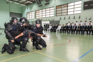 傅自應主任在保安司司長陪同下參觀治安警察局的情景演練