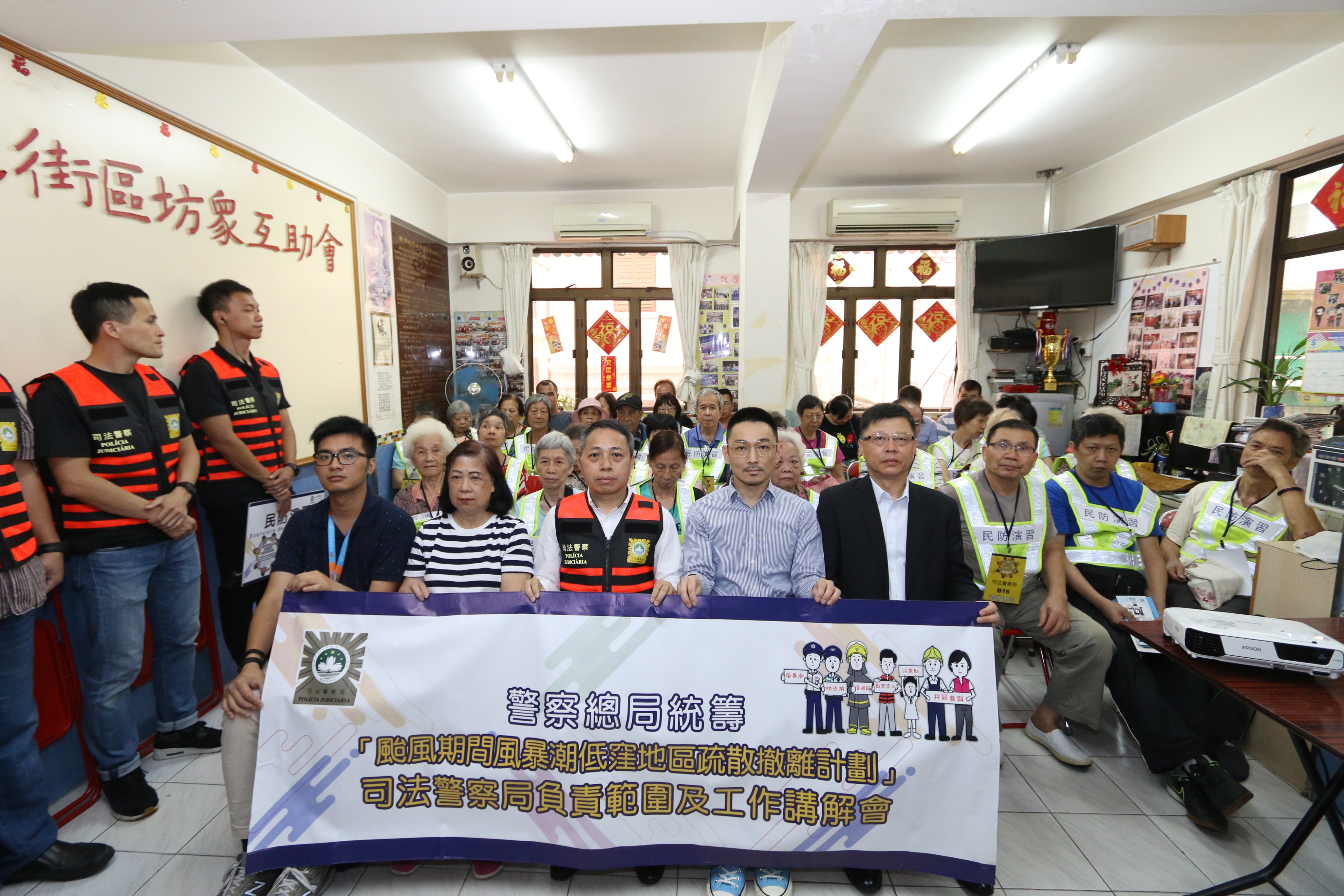 司警局與社工局合辦風暴潮撤離講解會及模擬演習