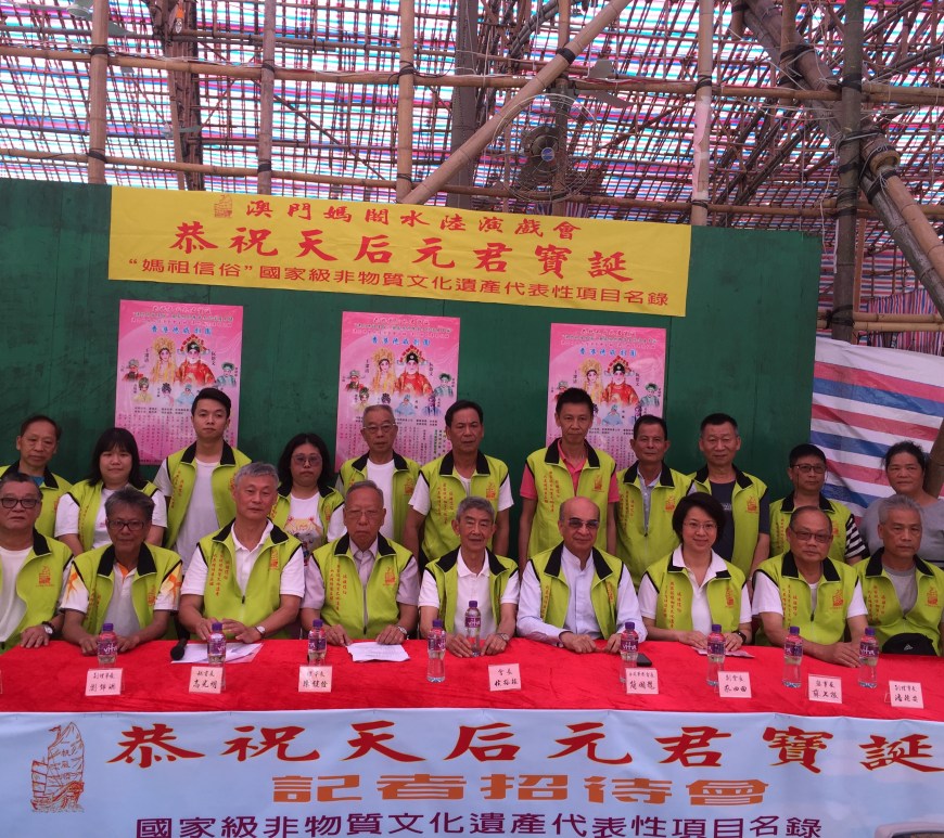 由澳門媽閣水陸演戲會舉辦,胡氏集團協辦,文化局、市政署、旅遊局、澳門基金會、澳門霍英東基金會、東方基金會贊助的《恭祝天后元君寶誕「澳門媽祖信俗」國家級非物質文化遺產名錄》演戲活動,四月二十五日起一連五日在媽閣廟前地戲棚盛大公演,今年邀請香港德威劇團來澳擔綱演出。該會希望通過活動,弘揚「媽祖信俗」工作,祈求神恩庇祐,澳門風調雨順,水陸平安,闔澳居民安居樂業。