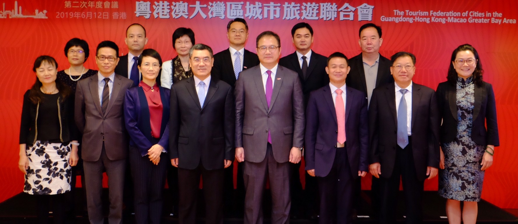 廣東省文化和旅遊廳廳長汪一洋、廣州市文化廣電旅遊局副局長吳青松、香港特別行政區政府旅遊事務署旅遊事務專員黃智祖、澳門特別行政區政府旅遊局副局長程衛東聯同傳播及對外關係廳廳長容美華、市場處處長黃麗坤,以及深圳、珠海、佛山、惠州、東莞、中山、江門及肇慶的旅遊部門領導出席會議。會議先由去年的輪值主席單位廣州市文化廣電旅遊局總結聯合會成立以來的工作情況,隨後由新一屆的輪值主席單位香港特別行政區政府旅遊事務署介紹本年度的工作計劃。