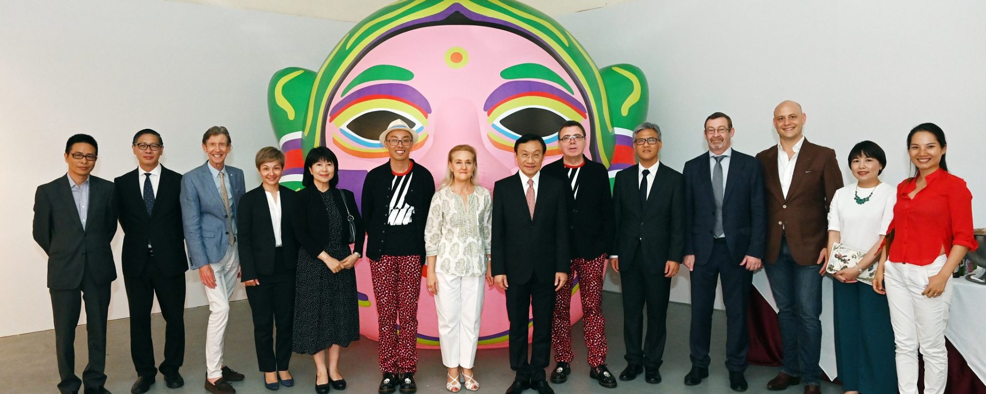 是次展覽展出來自比利時布魯塞爾的當代藝術組合「東波西波」(Benoit+Bo)取名為「大頭娃娃」的燈籠裝置作品,大頭娃娃用多種語言述說富含詩意、帶有傷感情調的文字,以表達出世界藝術和人類情感的普遍性,燈籠裝置旁亦擺放著象徵愛情符號的霓虹燈裝置。展覽同時也展示一系列稱為「門神」的數碼打印作品,作品創作參考了中國文化裡的「門神」,經藝術家巧妙使用新技術,重新闡釋「擁有護佑功能的圖畫」的傳統觀念。「東波西波」的作品通過攝影將不同空間重新組合,以聲音和不同語言進行敍述,並運用數碼科技呈現各種混合的文化因素,反映出兩位藝術家的無國界視野。此外,同樣由「東波西波」創作之大型當代藝術作品「開心大頭」,在舊法院大樓對開之區華利前地休憩區歡笑迎賓,把濃厚的藝文氣氛由室內的展覽館帶到戶外空間,遍佈全城。