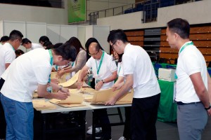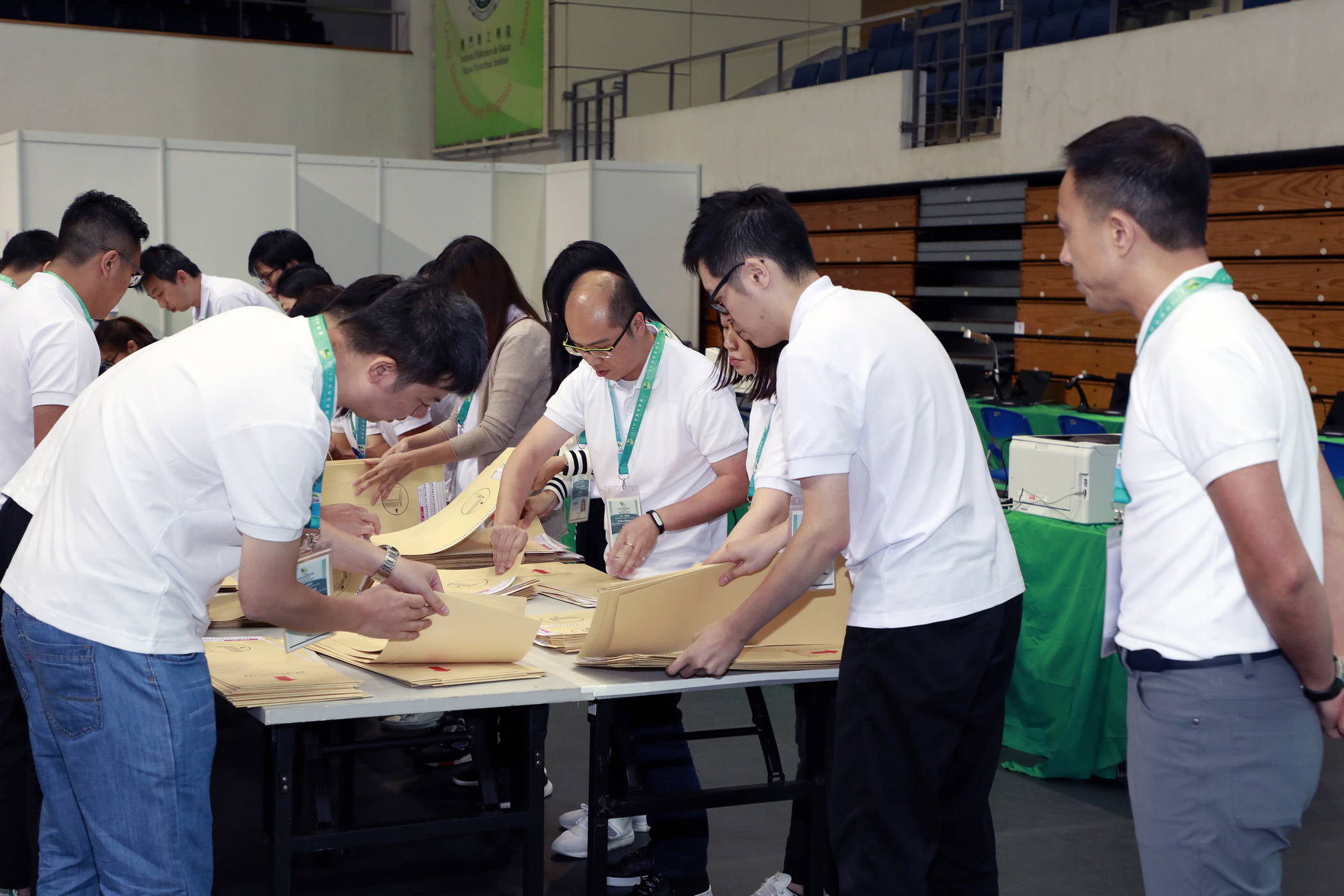 2019行政長官選舉委員會委員選舉:票站工作人員在截止投票後開票箱進行點票工作。