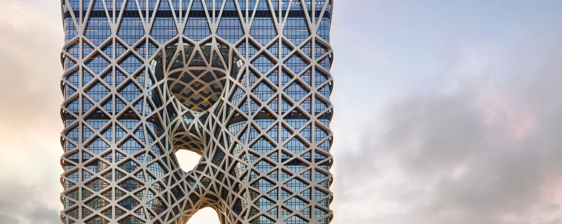 摩珀斯是新濠在本澳實現的又一傑作,在設計上融入了對細節前所未有的關注,以及頂級的客戶體驗。摩珀斯體現了多項建築及科技上的突破。這氣勢雄偉的一體式建築會令人一眼著迷。中央的鏤空設計部分突顯這樓高40層結構的複雜性和空間感,而兩棟大樓由平台和頂層連接,旅客可從兩道橋樑中,由建築內部窺探到外部壯觀的鏤空景色。
