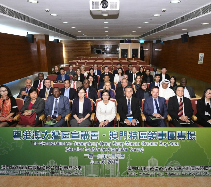 由澳門特別行政區禮賓公關外事辦公室主辦、澳門特別行政區政策研究和區域發展局協辦之「粵港澳大灣區宣講會—領事團專場於6月6日在澳門理工學院演講廳舉行,是次活動有來自28個國家的駐港澳總領事館合共36位領事官員參與。