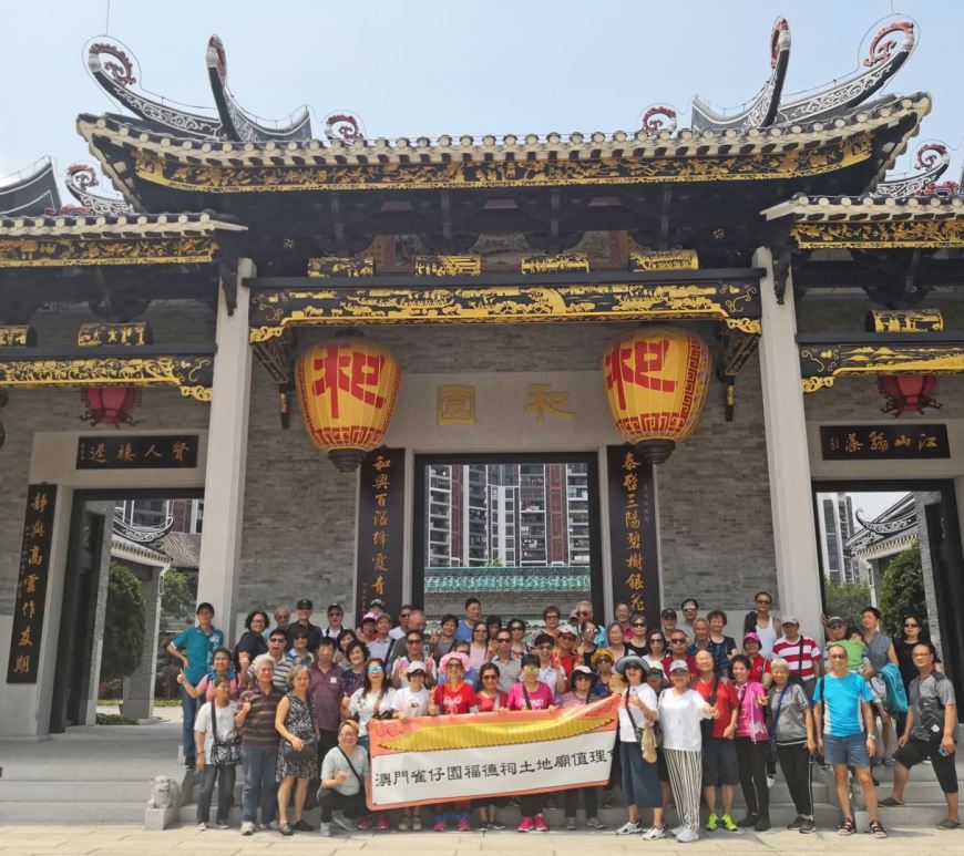 為增強澳門雀仔園區的聯繫,澳門雀仔園福德祠土地廟值理會日前舉辦「雀仔園福德祠歡樂兩天遊」,由會長羅盛宗擔任總領隊,副會長黃啟輝、副理事長李根、吳基慶、羅銘釗、秘書長楊才源等人任領隊,由值理及家屬組成一行七十人先前佛山順德感受嶺南風情。