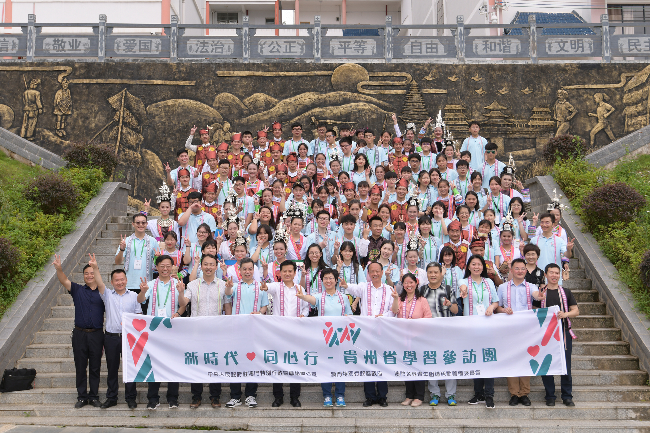 “新時代同心行”貴州省學習參訪團團員與從江第二民族高級中學的學生等合影