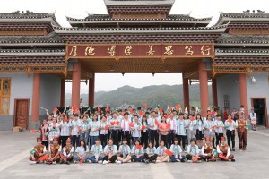 “新時代同心行”貴州省學習參訪團團長、行政法務司司長陳海帆與參訪團成員在從江合唱《我和我的祖國》。