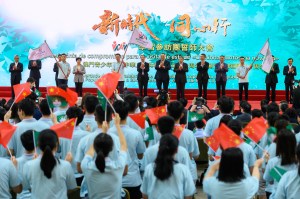 “新時代同心行”學習參訪團誓師大會上的授旗儀式