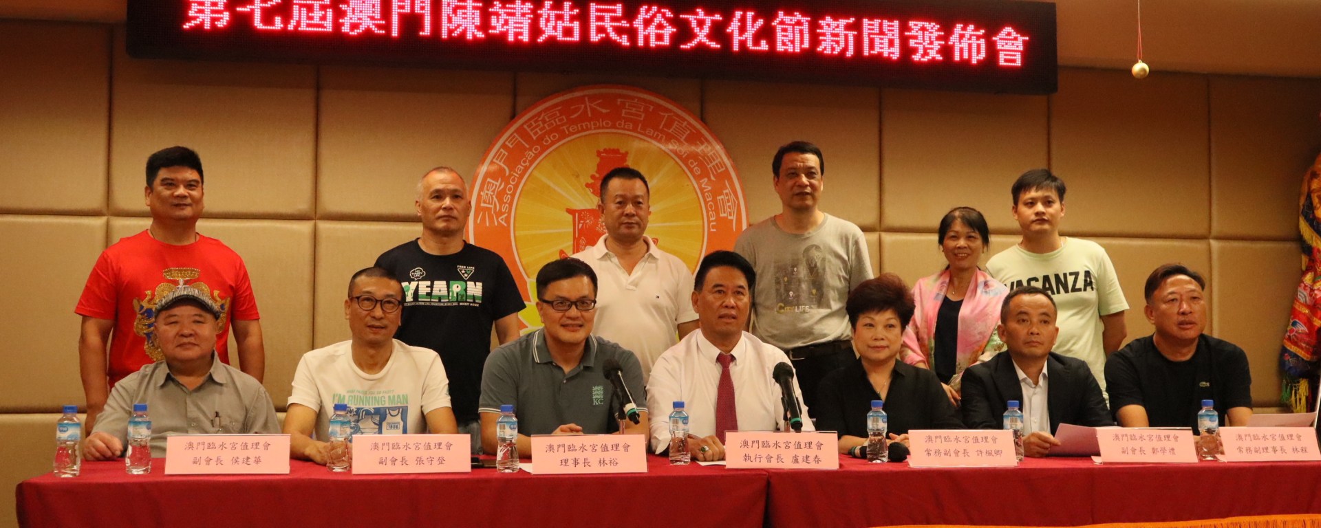 主辦單位日前在會址舉行記者會,分別由執行會長盧建春、理事長林裕、常務副會長許楓卿、副會長張守登、鄭學禮、侯建華、常務副理事長林程等主持及介紹。林裕表示,澳門臨水宮於二零一三年在創會會長陳信光及一批福州籍鄉親共同推動後成立。在特區政府、中聯辦、澳門基金會、文化局及旅遊局的大力支持下,該會已連續舉行了六屆澳門陳靖姑民俗文化節活動。第七屆澳門陳靖姑民俗文化節由澳門臨水宮值理會、澳門順天聖母陳靖姑文化研究中心主辦,澳門福州十邑社團總會、台灣傳統文化促進協會、台灣桃園中壢臨水鳳儀宮協辦,澳門基金會、文化局資助,旅遊局、市政署、治安警察局、交通事務局、澳門福建體育總會、澳門齒康牙科中心支持,將於七月二十八及二十九日舉行。文化節活動內容相當豐富,包括有歡迎晚宴、臨水夫人信仰文化國際學術研討會、大型公開祈福法會、文藝表演、陳靖姑歷史文化圖片展及金身巡遊等。