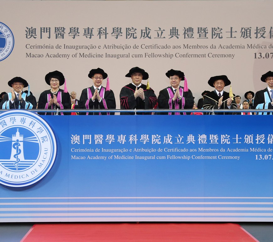 澳門醫學專科學院成立典禮暨院士頒授儀式於7月13日舉行,主禮嘉賓包括:澳門特別行政區行政長官崔世安、國家衛生健康委員會副主任于學軍、中央人民政府駐澳門特別行政區聯絡辦公室副主任薛曉峰、中華人民共和國外交部駐澳門特別行政區特派員公署署理特派員王冬、澳門特別行政區政府社會文化司司長譚俊榮、澳門特別行政區政府衛生局局長李展潤及澳門醫學專科學院專業委員會熊志添主席。另有30多位來自香港及海外的嘉賓,及本澳嘉賓、醫療機構代表、醫務委員會委員等出席典禮。