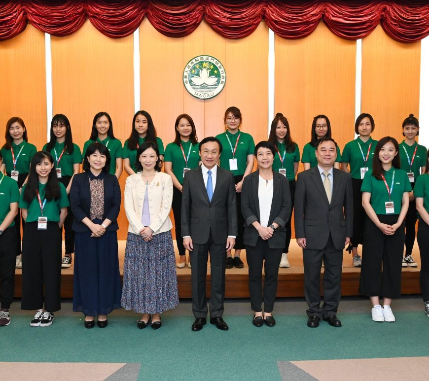 獲選參與“故宮博物院青年實習計劃2019”的16名澳門青年實習生7月12日啟程前,在文化局局長穆欣欣、副局長梁惠敏及高等教育局代副局長陳旭偉等的帶領下,前往政府總部向社會文化司司長譚俊榮辭行。譚俊榮祝願實習計劃圓滿成功,勉勵青年學生珍惜機遇、拓寬視野、學以致用,為澳門建成文化璀璨之城及大灣區建設發揮自己的力量;加強自身對國家和中華優秀傳統文化的認識,將來積極融入國家發展大局。