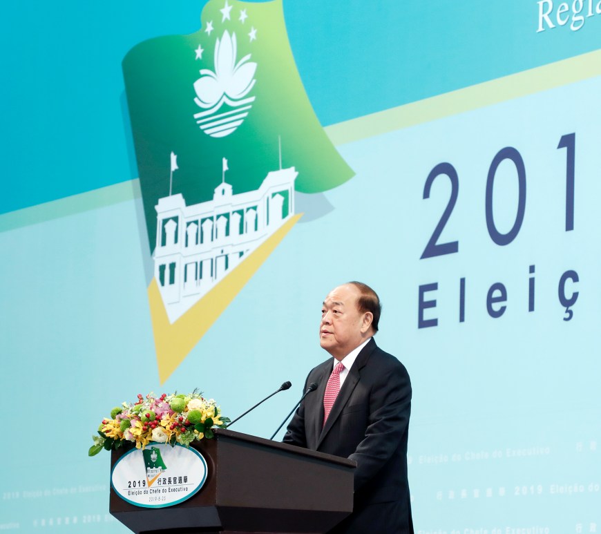 澳門特別行政區第五任行政長官選舉於8月25日舉行。賀一誠當選成為第五任行政長官候任人,取得有效票392張,得票率達98%。