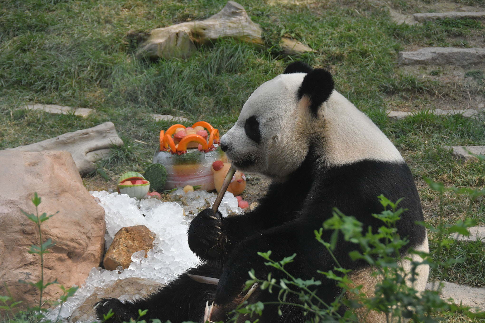 「開開」享用 特製的竹葉水果冰生日蛋糕