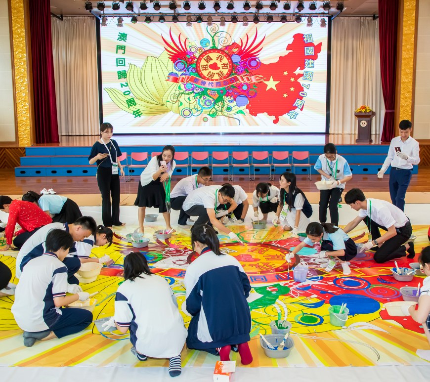 「我和我的祖國」主題會系列活動-「新時代同心行」五省師生回訪活動,河北省、貴州省、江蘇省、廣東省及湖南省的內地中小學生及老師代表日前到訪濠江中學附屬英才學校,與澳門中學生互相交流,共同參與「新時代同心行」的活動。