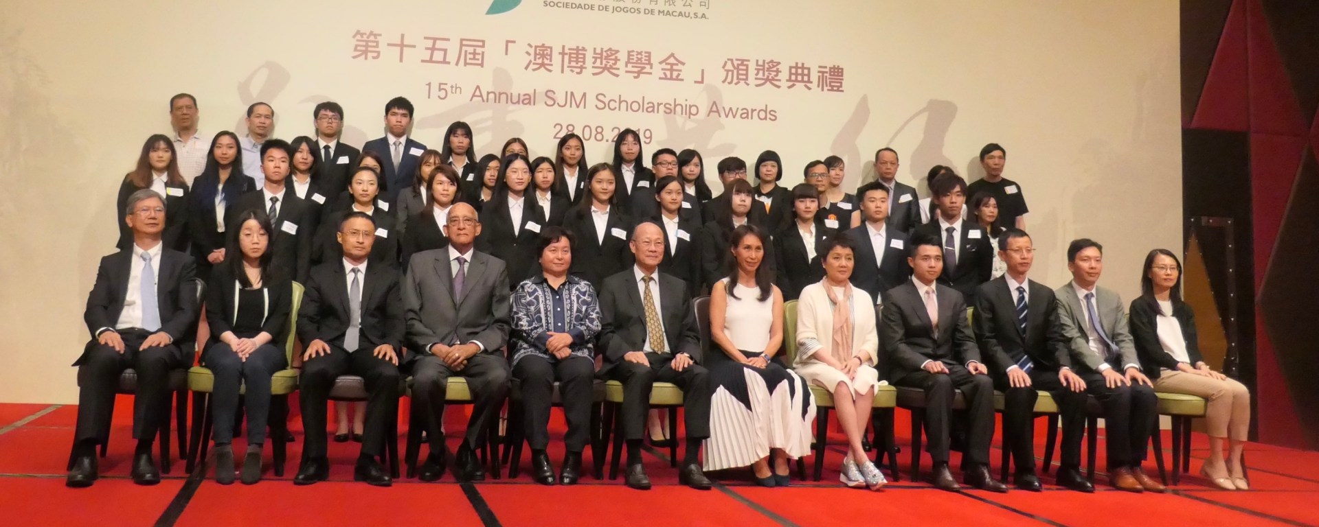 澳門博彩股份有限公司八月廿八日於新葡京宴會廳舉行第十五屆「澳博獎學金」頒獎典禮,向十名優秀的員工子女頒發獎學金,同時向廿八名尚在就讀的往屆得獎學生續發新學年的獎學金。中央人民政府駐澳門特別行政區聯絡辦公室宣傳文化部殷汝濤副部長、經濟部司晨處長級助理、澳門特別行政區政府教育暨青年局中學暨技術職業教育處梁怡安處長、高等教育局資源及學生福利處江靜欣代處長、澳門理工學院學術事務部李原部長,與澳博董事局主席何超鳳女士、董事兼澳博獎學金評審委員會主席蘇樹輝博士、常務董事兼行政總監梁安琪女士、董事何超蕸女士及何猷亨先生,以及澳博各部門主管,歡聚一堂,一同見證得獎學生的喜悅,場面溫馨熱鬧。