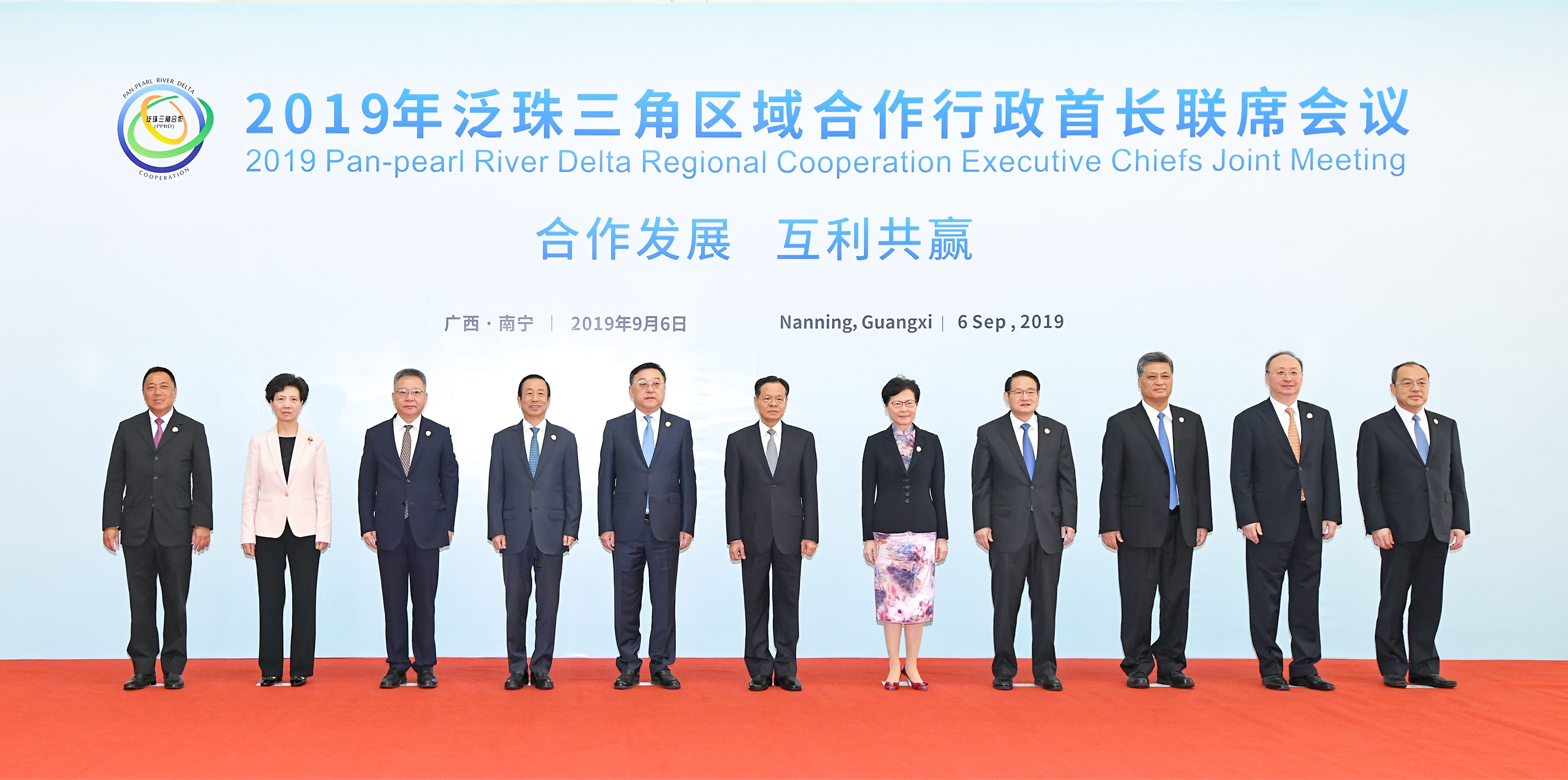 2019年泛珠三角區域合作行政首長聯席會議舉行前,經濟財政司司長梁維特與泛珠各省區領導和其他主要嘉賓合影。