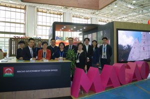局長文綺華與團隊及業界代表在澳門展位前合照