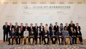 澳門特別行政區行政長官崔世安出席“2019中國(澳門)傳統醫藥國際合作論壇”,並與出席嘉賓合影。