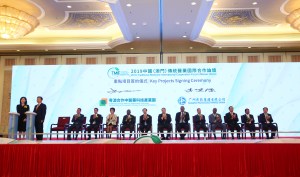 產業園董事長呂紅與廣州醫藥集團有限公司董事長李楚源共同簽署重點項目合作協議。