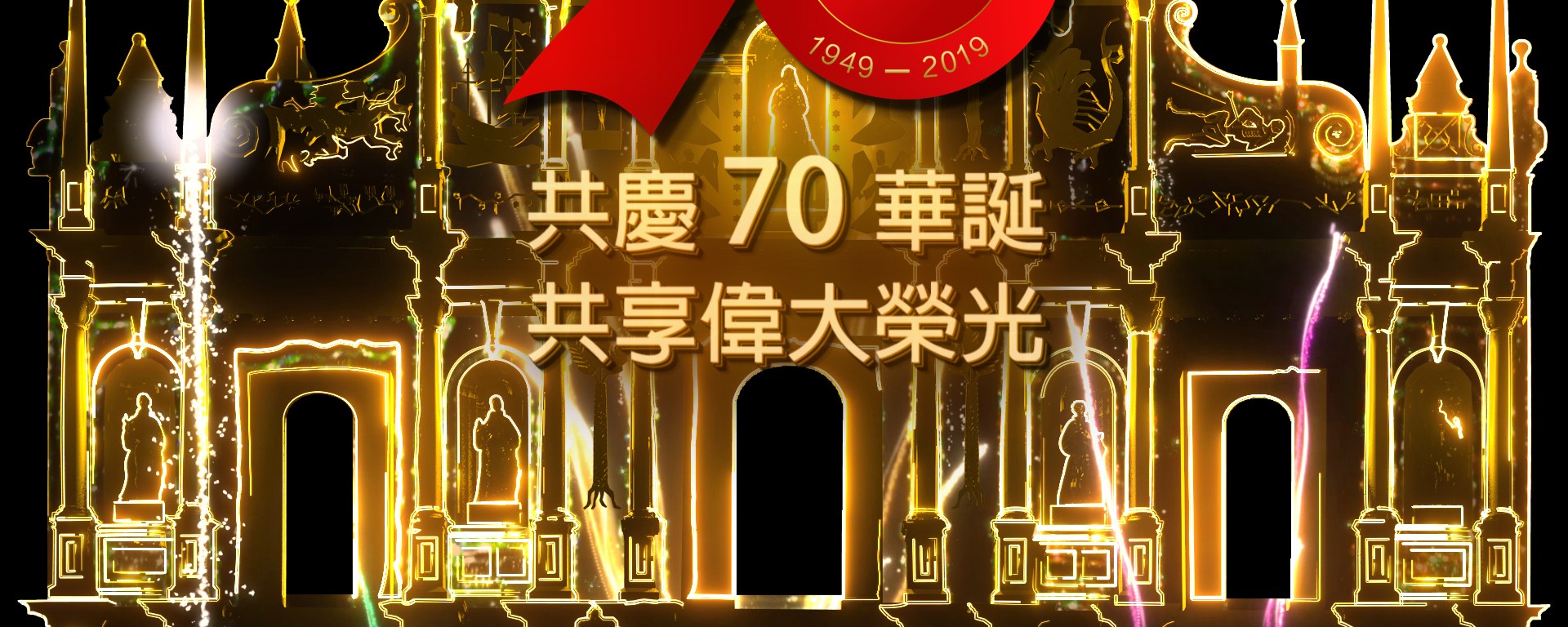 為慶賀中華人民共和國成立70周年,旅遊局於9月29至10月1日連續三晚在大三巴牌坊特別呈獻「共慶70華誕 共享偉大榮光」為主題的光雕表演,與居民和旅客一起歡度節慶。