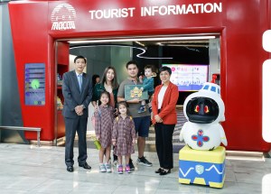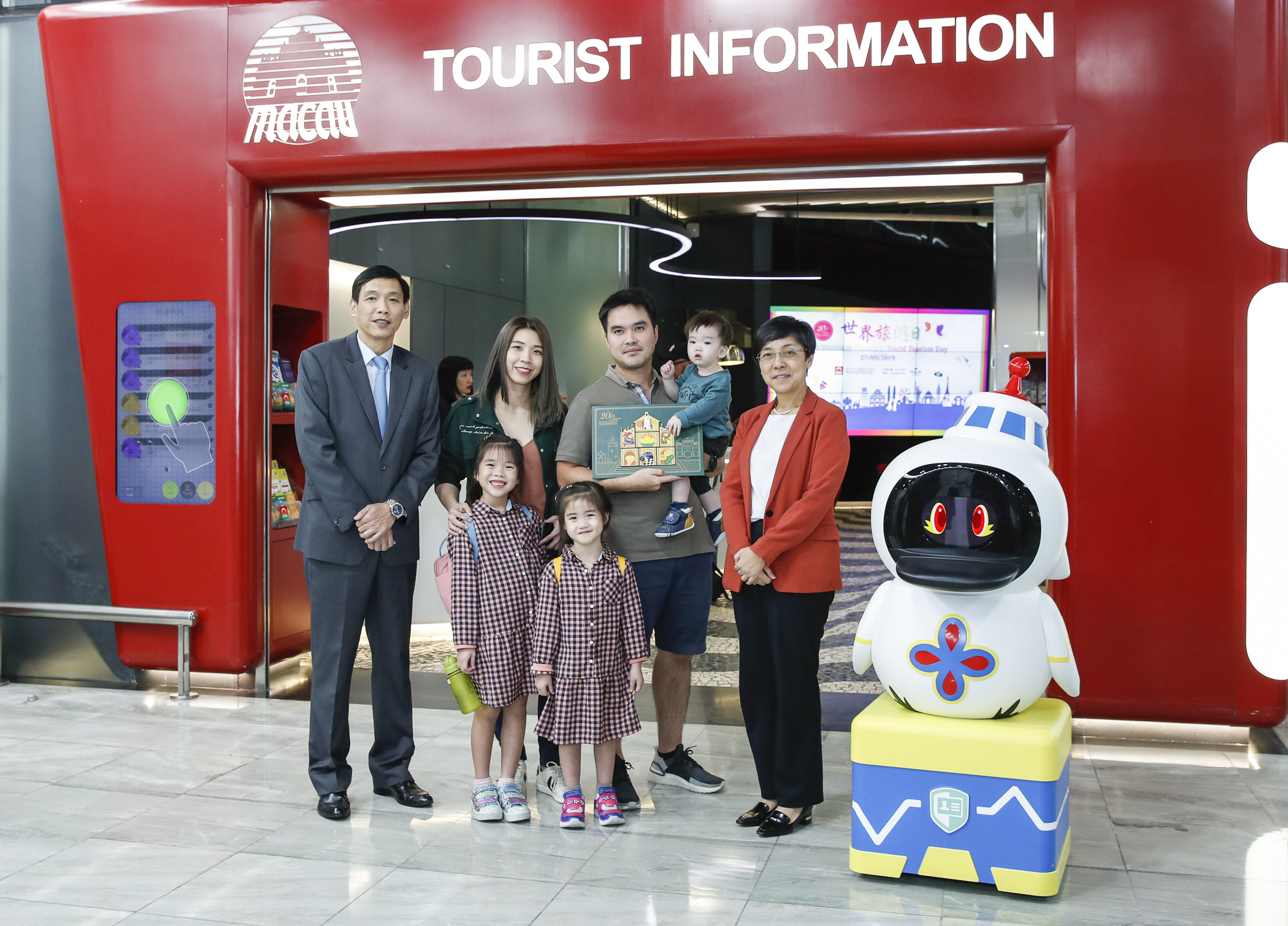 旅遊局領導及澳門首次亮相的“麥麥”機械人迎接幸運旅客