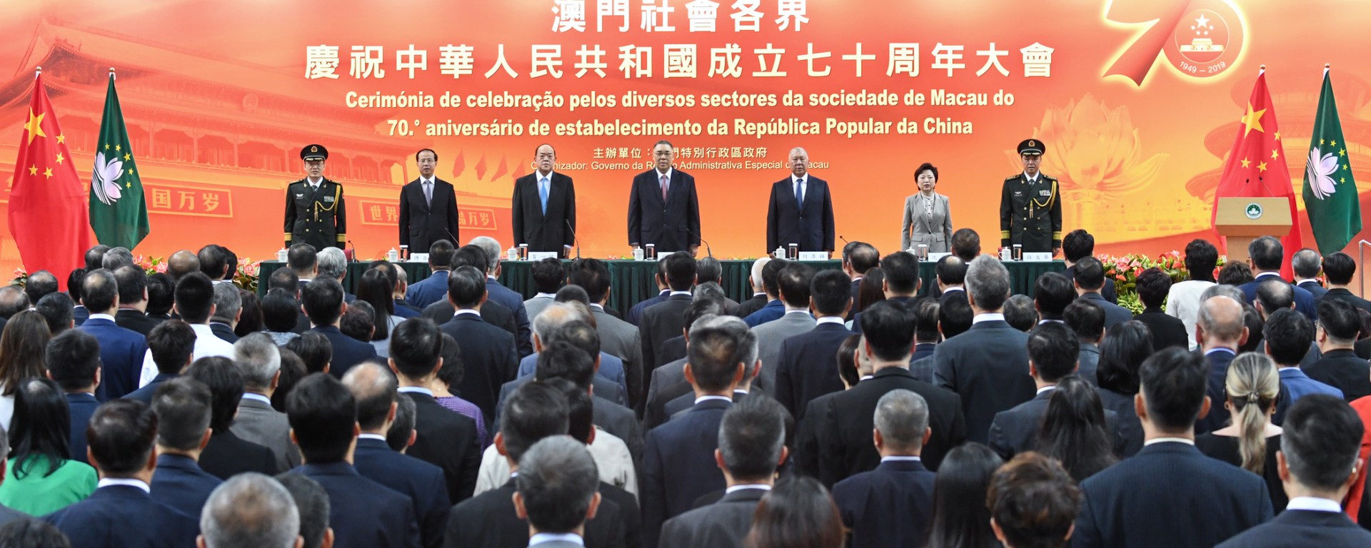 今年是中華人民共和國成立七十周年,澳門特區政府於9月27日舉辦「澳門社會各界慶祝中華人民共和國成立七十周年大會」。行政長官崔世安致辭時表示,新中國成立以來取得了舉世矚目的歷史性成就,而澳門回歸後重新納入國家治理體系,「一國兩制」在澳門特區的實踐彰顯了強大生命力;澳門特區將不斷推進「一國兩制」成功實踐,作為實現中華民族偉大復興的中國夢的重要組成部分。