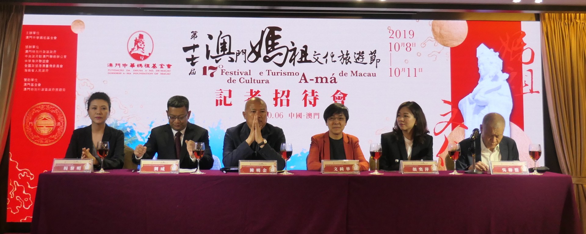 由澳門中華媽祖基金會主辦,澳門特區政府、中聯辦、中華海外聯誼會、全國政協港澳台僑委員會、海南省人民政府協辦,澳門基金會贊助的「第十七屆澳門媽祖文化旅遊節活動」於十月八至十一日舉行,今年邀請海南省來澳參與。有來自內地、台灣和「一帶一路」沿線國家的宮廟代表等海內外嘉賓和信眾一千多人。主辦單位希望透過與各省市合作互動,將媽祖文化發揚光大的同時,也彼此互為平台,宣傳兩地的旅遊形象,促進兩地的經貿文化交流。
