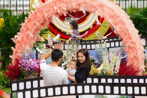 政府總部內,一家大小合影留念的歡樂情景到處可見。